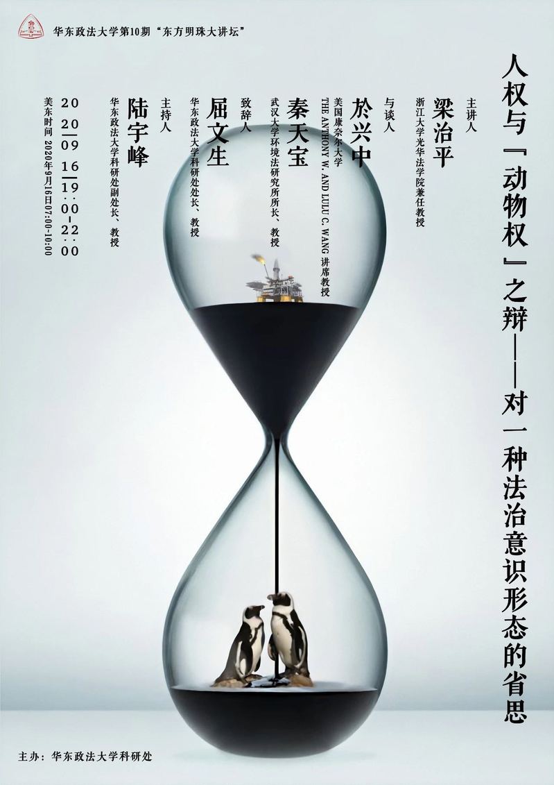 華東政法大學(xué)第10期“東方明珠大講壇”有幸邀請(qǐng)到浙江大學(xué)光華法學(xué)院兼任教授梁治平在線主講《人權(quán)與“動(dòng)物權(quán)”之辯——對(duì)一種法治意識(shí)形態(tài)的省思》。同樣榮幸的是,本期“東方明珠大講壇”也邀請(qǐng)到了美國(guó)康奈爾大學(xué)The Anthony W. and Lulu C. Wang 講席教授於興中,武漢大學(xué)環(huán)境法研究所所長(zhǎng)秦天寶教授,世界動(dòng)物保護(hù)協(xié)會(huì)科學(xué)家孫全輝博士等專家學(xué)者在線與談。我校科研處處長(zhǎng)屈文生教授等專家學(xué)者將在線參加本次大講壇,講座由我??蒲刑幐碧庨L(zhǎng)陸宇峰教授主持。