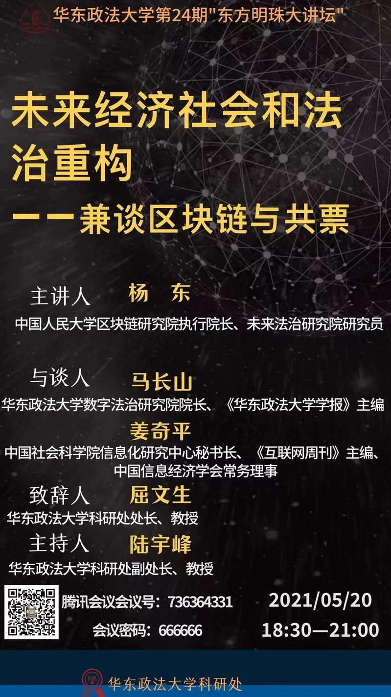 主講人:楊 東 教授、中國人民大學國發院金融科技與互聯網安全研究中心主任、區塊鏈研究院執行院長、競爭法研究所執行所長