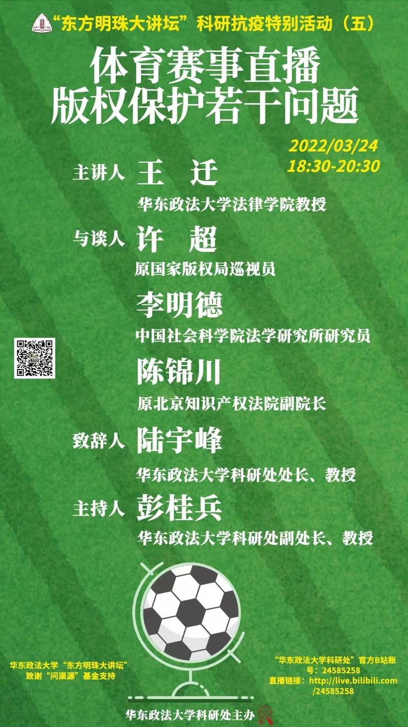 “東方明珠大講壇”科研抗疫特別活動(五)|王遷、陳錦川、許超、李明德:體育賽事直播版權保護若干問題