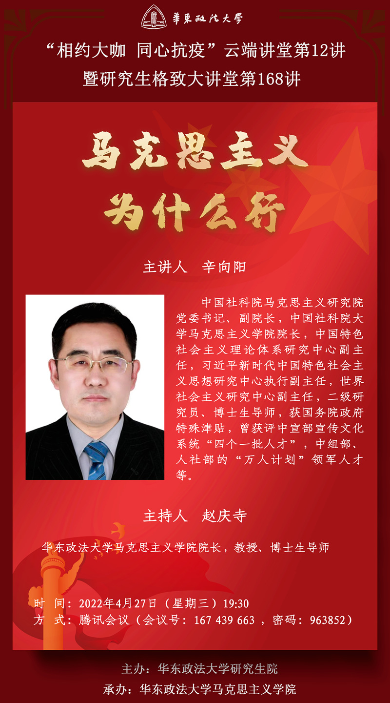 主講人:辛向陽,中國社科院馬克思主義研究院黨委書記、副院長,中國社科院大學馬克思主義學院院長,中國特色社會主義理論體系研究中心副主任,習近平新時代中國特色社會主義思想研究中心執行副主任,世界社會主義研究中心副主任,二級研究員、博士生導師,獲國務院政府特殊津貼,曾獲評中宣部宣傳文化系統“四個一批人才”,中組部、人社部的“萬人計劃”領軍人才等。