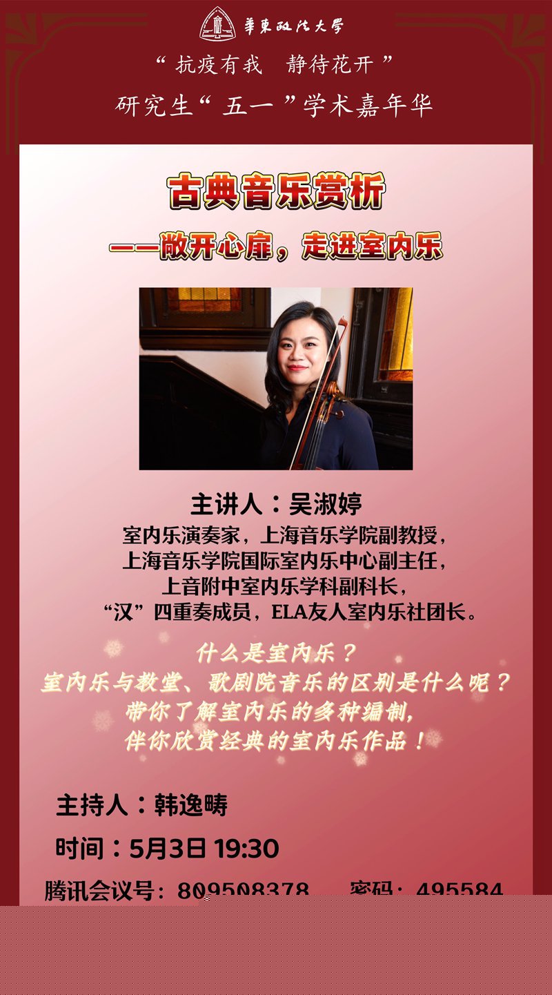 作為活躍的室內樂演奏家、上海音樂學院“漢”四重奏成員,ELA 上海友人室內樂社團長,吳淑婷與同事們一起從事弦樂重奏的演奏與教學。ELA在全球范圍內致力于推廣經典20 世紀以及杰出華人室內樂作品,至今積累作品140余部,足跡遍布歐洲、美國、亞洲等多個國際國內室內樂舞臺,并且出版和發行了多張室內樂唱片及數部室內樂教材。她所執教的22組學生106人次獲國際國內室內樂比賽名次,個人15次獲得國際和國內的優秀教師稱號。